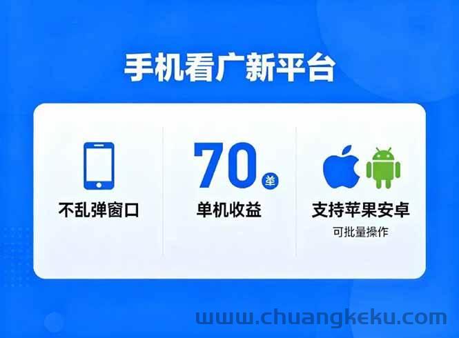 创客库 » (16710期)看广新平台,不乱弹窗口,单机做到了70加,支持苹果和安卓可批量,做到了日入1万+