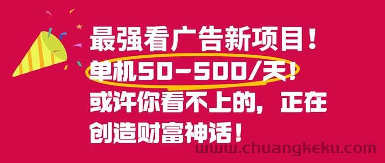创客库 » (16766期)最强看广告新项目单机50~500/天,0投入,0风险,有手机就可做!