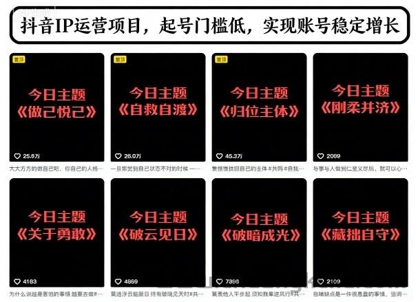 抖音IP运营项目,抖音今日主题玩法,起号门槛低,实现账号稳定增长