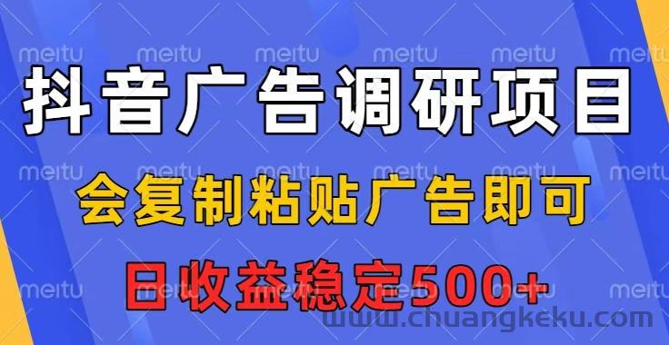 抖音广告调研项目,会复制粘贴广告即可,任务没有上限,日收益稳定5张【揭秘】