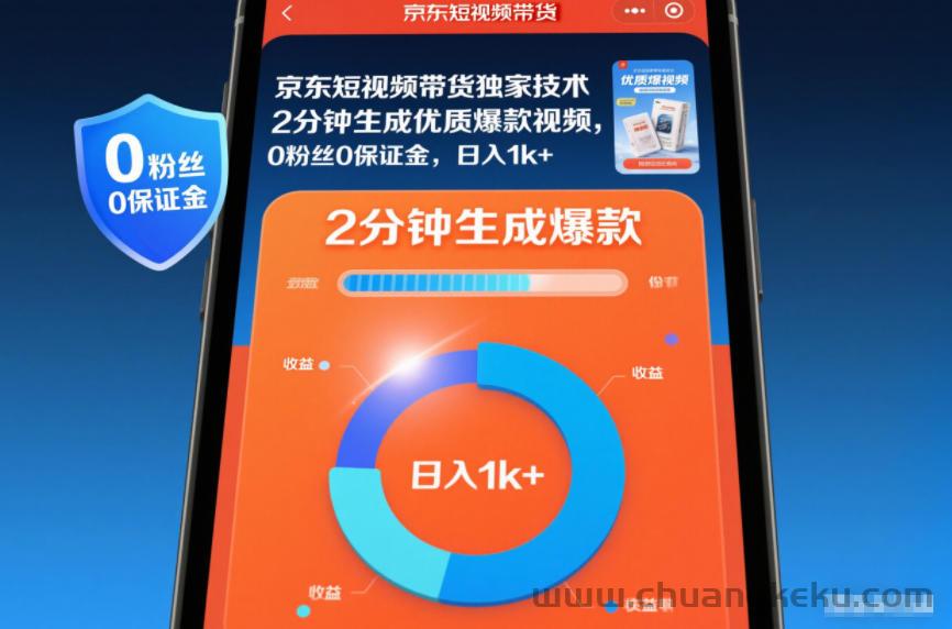 创客库 » 京东短视频带货独家技术,2分钟生成一条优质爆款视频,0粉丝0保证金,日入1k+【揭秘】