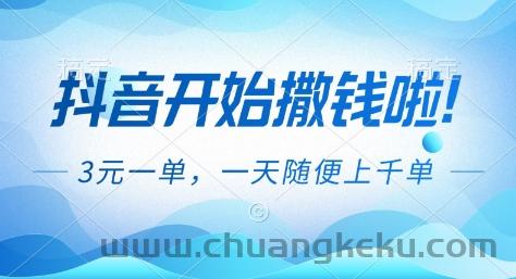 抖音开始撒钱拉,3米一单,一天随便上千单,抖音福利推广项目【揭秘】