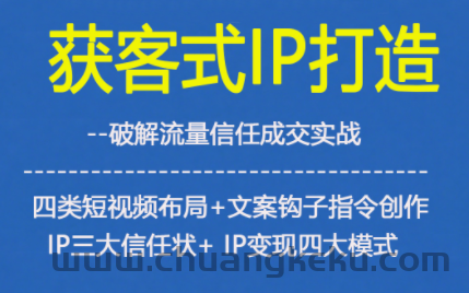 创客库 » 获客型IP打造,破解流量信任成,四类短视频布局+文案钩子指令创作IP三大信任状+IP变现四大模式