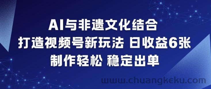 AI与非遗文化结合,打造视频号新玩法,日收益6张,制作轻松,稳定出单