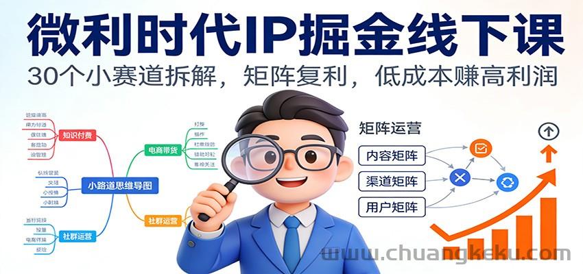 创客库 » 微利时代IP掘金线下课:30个小赛道拆解,矩阵复利,低成本赚高利润