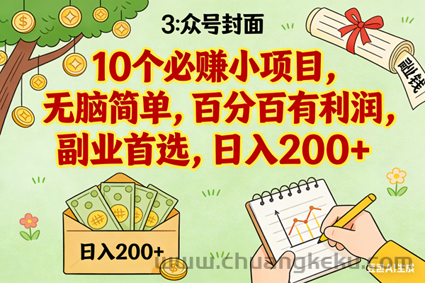 10个必赚小项目,无脑简单,百分百有利润,副业首选,日入200+ 超级简单