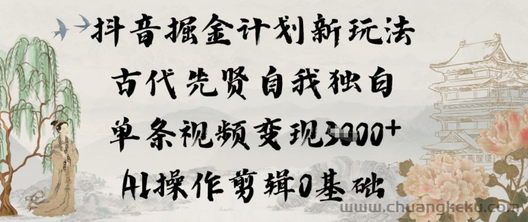 创客库 » 抖音掘金计划新玩法,古代先贤自我独白,单条视频变现1k+,AI操作剪辑0基础