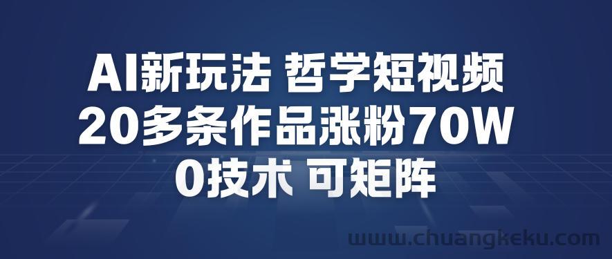 创客库 » AI新玩法哲学短视频制作教学,20多条作品涨粉70W,0成本赛道,可矩阵