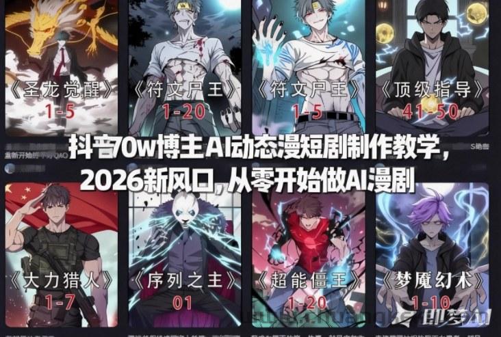 抖音70w博主AI动态漫短剧制作教学,2026新风口,从零开始做AI漫剧,普通人也能月入过W