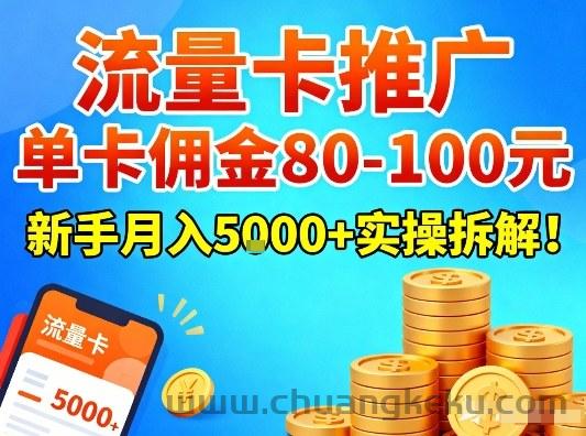 流量卡推广,单卡佣金80-100,新手月入5k+实操拆解!