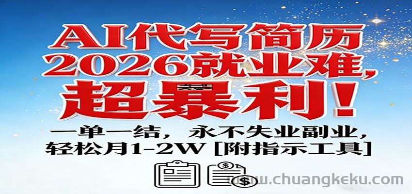 创客库 » AI代写简历,2026就业难,超暴利!一单一结,永不失业副业,轻松月1-2W【附指令工具】