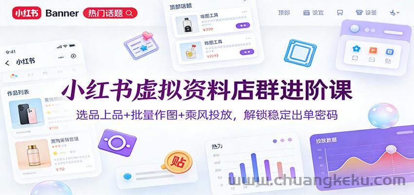 创客库 » 小红书虚拟资料店群进阶课:选品上品+批量作图+乘风投放,解锁稳定出单密码
