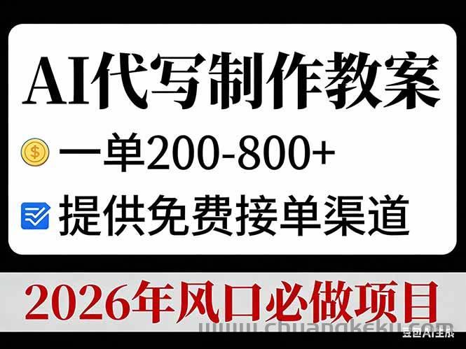 创客库 » (17096期)AI代写制作教案,一单200-800+,提供免费接单渠道,2026年风口必做项目