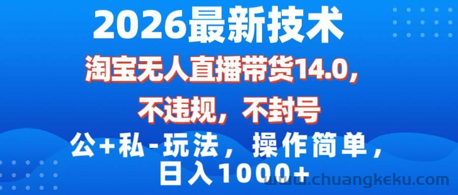 创客库 » (17110期)2026最新技术,淘宝无人直播带货14.0,不封号,不违规,公+私玩法,操作简单,日入1000+