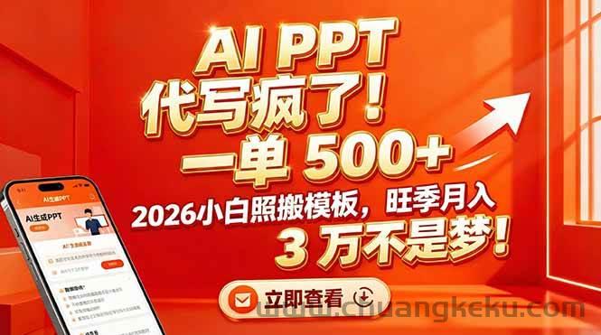 创客库 » (17162期)AI PPT 代写疯了!一单 500+,2026小白照搬模板,旺季月入 3 万不是梦!