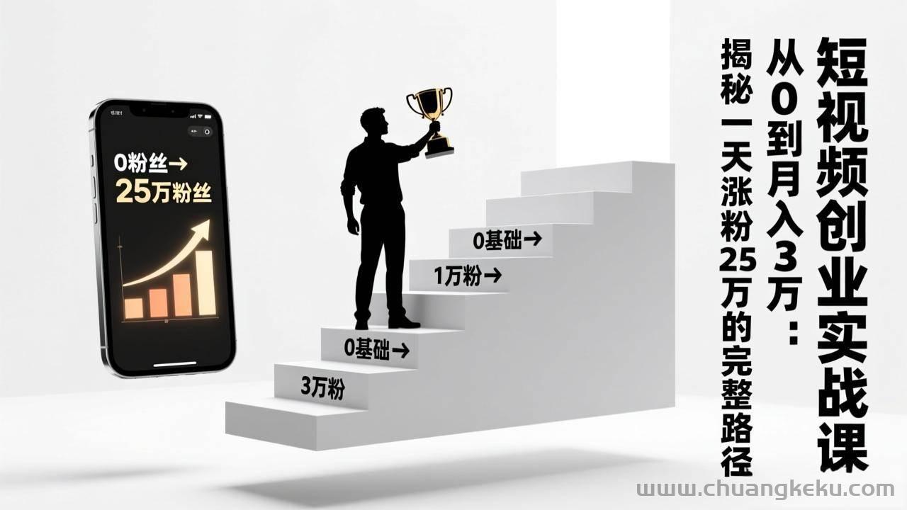创客库 » (17221期)短视频创业实战课:从0到月入3万:揭秘一天涨粉25万的完整路径