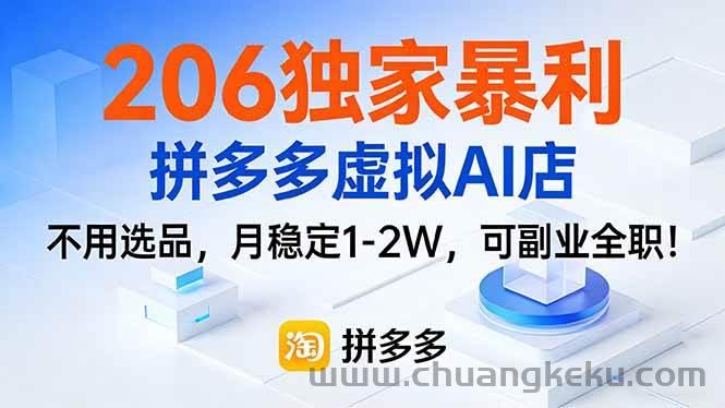 创客库 » (17234期)206独家暴利,拼多多虚拟AI店,不用选品,月稳定1-2W,可副业全职!