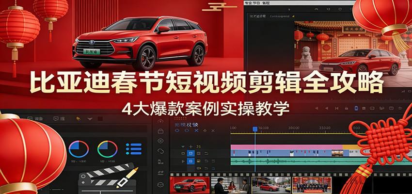 本课程专为比亚迪车主、汽车博主及短视频爱好者打造,聚焦春节场景下的短视频剪辑技巧。课程包含 4 个完整实战案例,从素材筛选、画面构图,到年味卡点、转场特效、专属配乐搭配,全程手把手拆解。