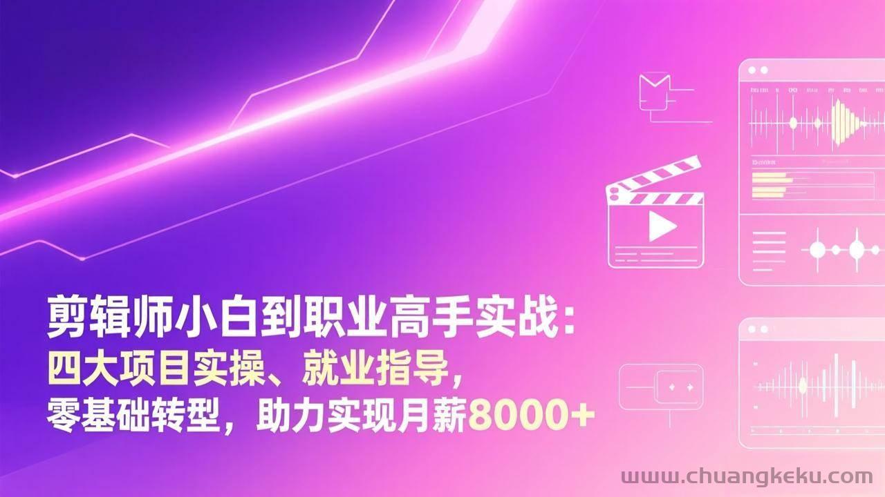 创客库 » (17360期)剪辑师小白到职业高手实战:四大项目实操、就业指导,零基础转型,助力实现月薪8000+