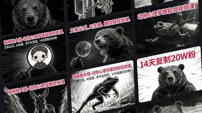 创客库 » (17376期)情绪放大镜-动物心理学爆款短视频课,文案公式、AI生图、多平台变现,14天复制20W粉