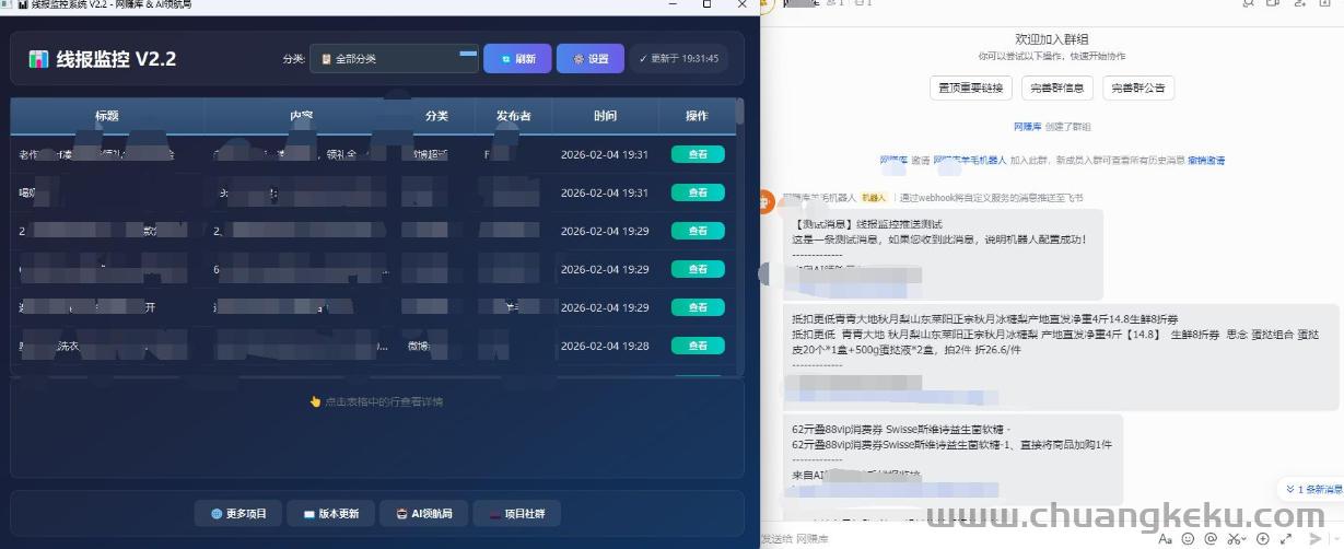 线报羊毛监控更新啦,通过获取大家的需求,本次更新加入了机器人通知,