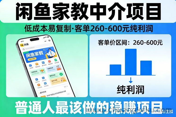 创客库 » 闲鱼家教中介项目,低成本易复制,客单260-600不等纯利润,这才是普通人最该做的稳賺项目