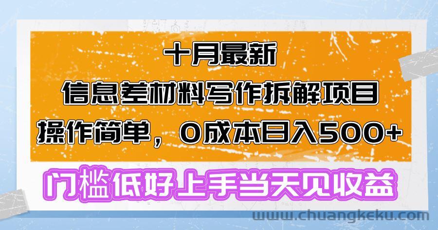 创客库 » (13094期)十月最新信息差材料写作拆解项目操作简单,0成本日入500+门槛低好上手…