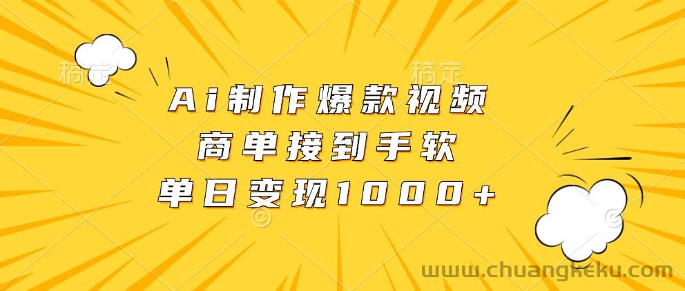 创客库 » Ai制作爆款视频,商单接到手软,单日变现1000+