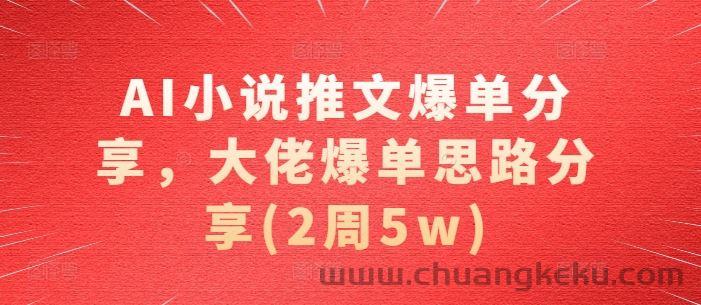 AI小说推文爆单分享,大佬爆单思路分享(2周5w)