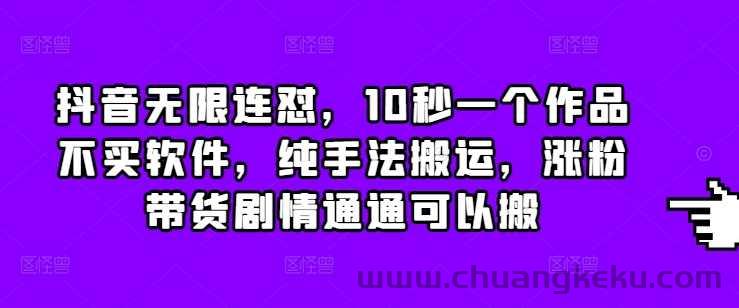 抖音无限连怼,10秒一个作品不买软件,纯手法搬运,涨粉带货剧情通通可以搬