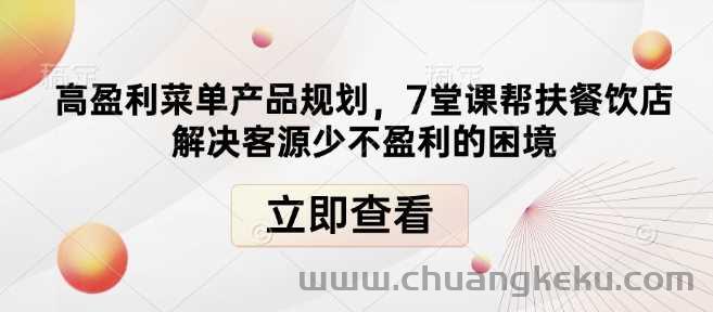 创客库 » 高盈利菜单产品规划,7堂课帮扶餐饮店解决客源少不盈利的困境