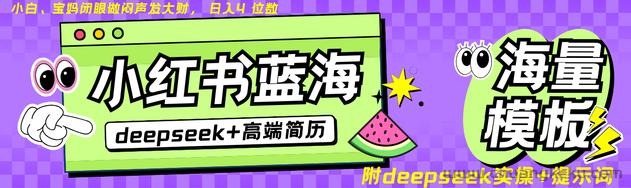 创客库 » Deepseek+小红书简历蓝海赛道 日入无上限 24小时自动发货 零成本 不限时间地点