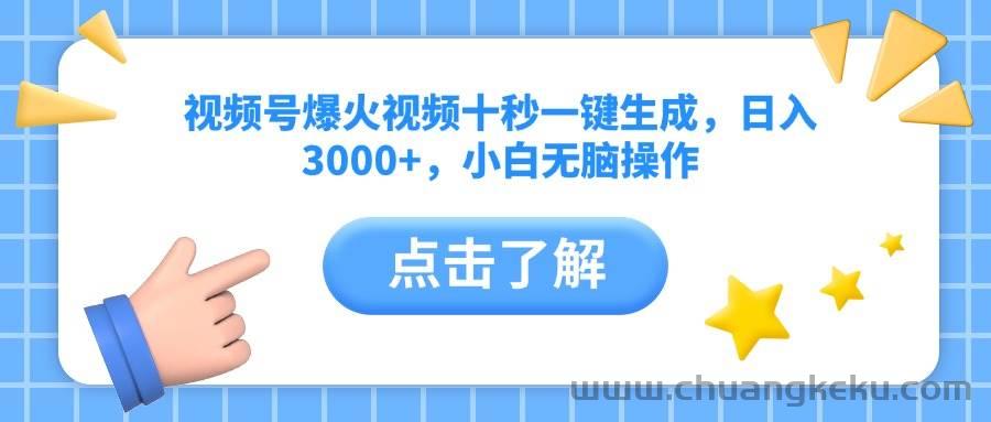 创客库 » (14507期)视频号爆火视频十秒一键生成,日入3000+,小白无脑操作