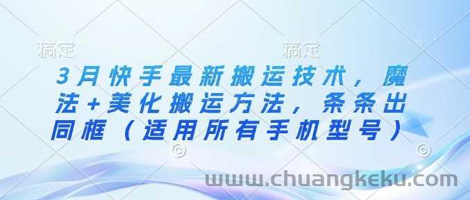 创客库 » 3月快手最新搬运技术,魔法+美化搬运方法,条条出同框(适用所有手机型号)