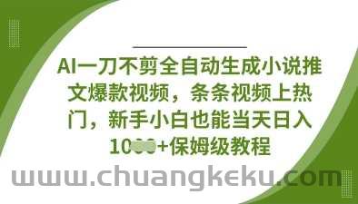 创客库 » AI一刀不剪全自动生成小说推文爆款视频,条条视频上热门,新手小白也能当天日入数张