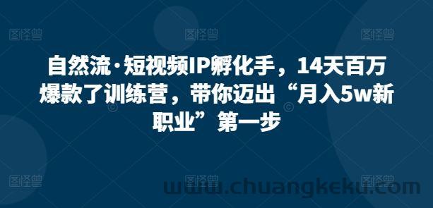 自然流·短视频IP孵化手,14天百万爆款了训练营,带你迈出“月入5w新职业”第一步