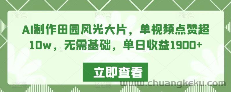 创客库 » AI制作田园风光大片,单视频点赞超10w,无需基础,单日收益1900+【揭秘】