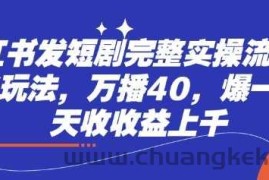 小红书发短剧完整实操流程,两张玩法,万播40,爆一个一天收收益上千